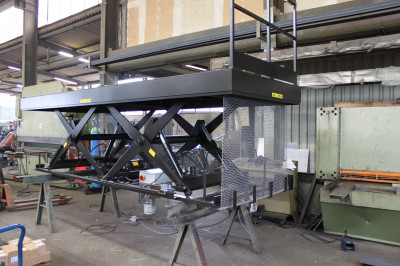 Scherenpaare, Steuerungen, Zylinder, Aggregate, Laufrollen und Kleinteile sind Normteile, die auch bei den Serien- und Verladehebebühnen zum Einsatz kommen. Durch die mechanische Zwangssynchronisation ist die Plattformparallelität auch bei langen Hebebühnen gewährleistet. Einseitige Lasten werden sicher aufgenommen.