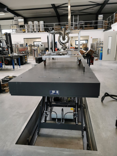 Tandemscheren-Hebebühne in der Produktion von Filtersystemen für die Bier- /Weinproduktion.